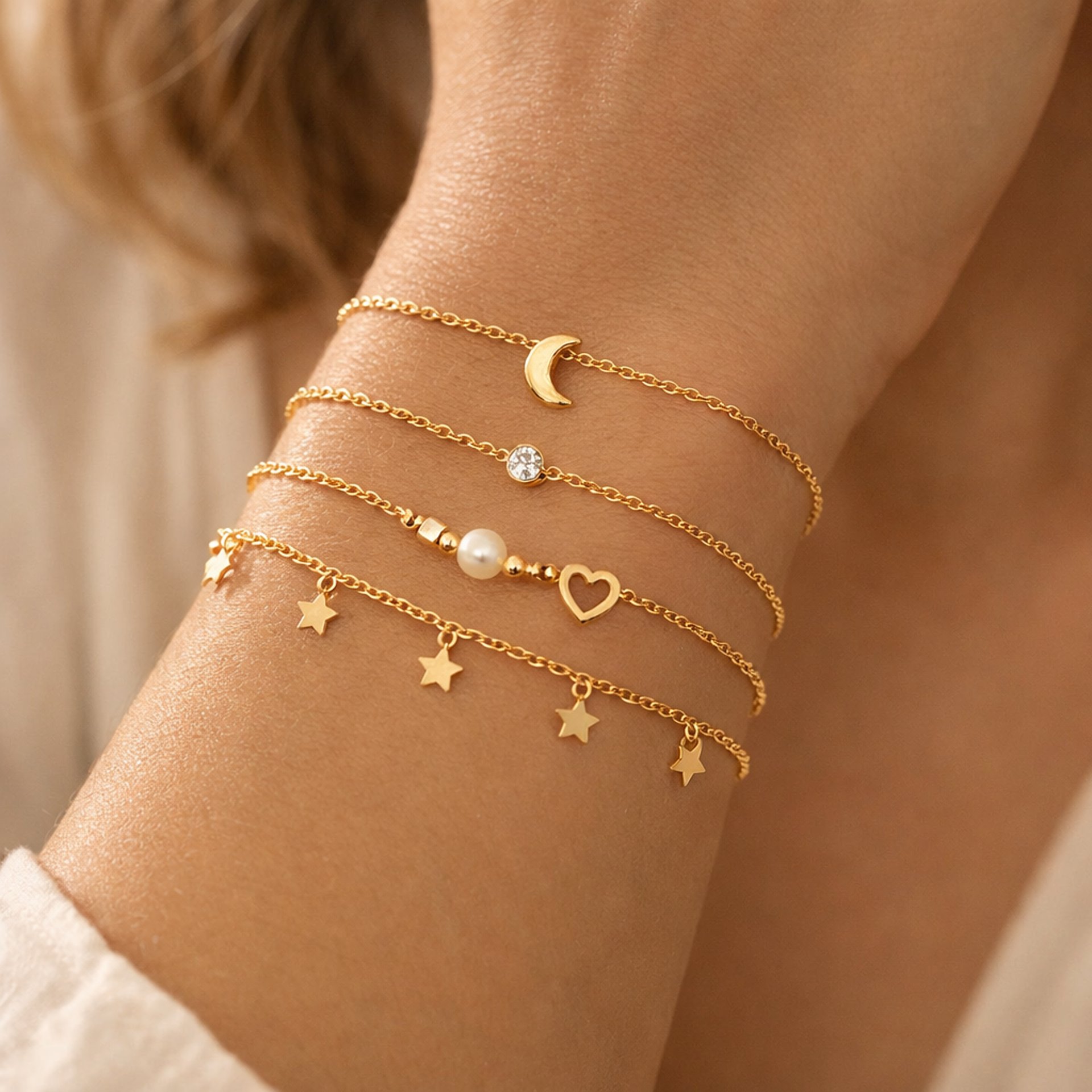Pulseiras folheadas a ouro 18k que adicionam sofisticação e charme ao seu visual. Peças delicadas para o dia a dia e ocasiões especiais.
